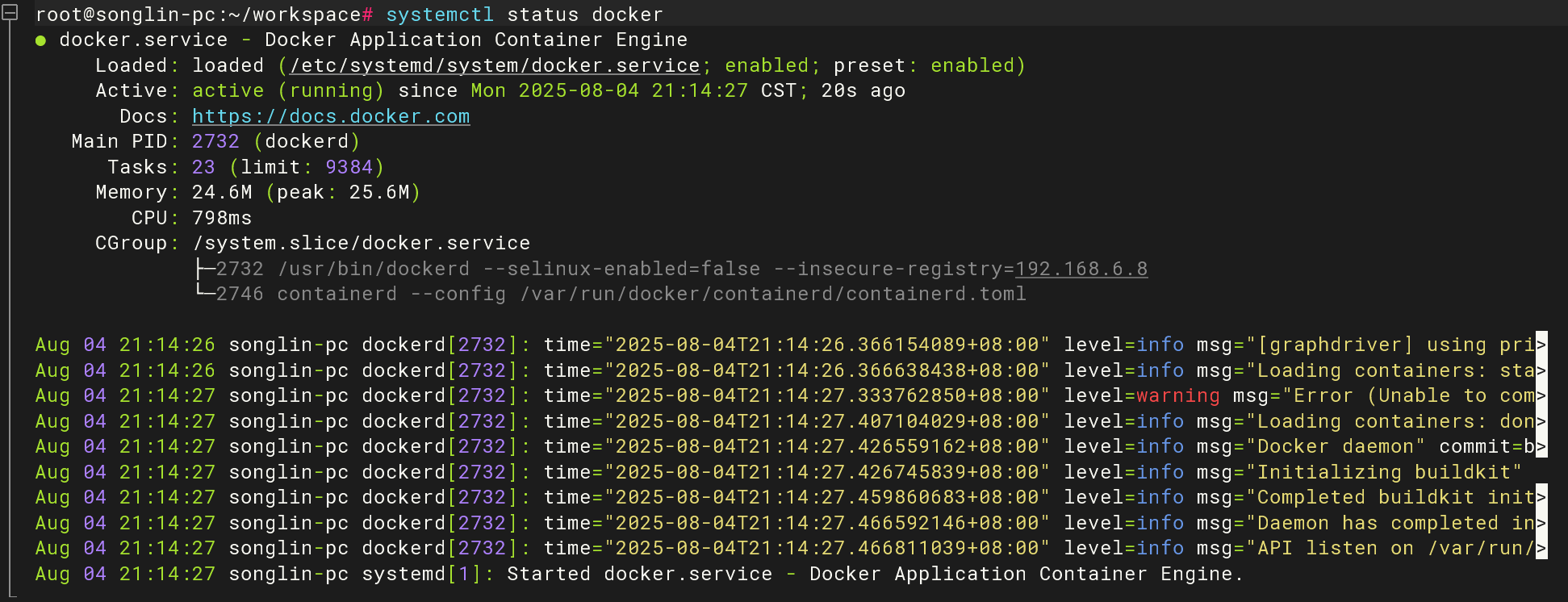 ② 重启 docker 服务。注意:每次配置完 daemon.json 文件后,一定要重启 docker 服务。