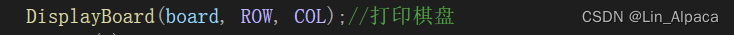将棋盘清空后,将棋盘打出让玩家先走。这里我们设置一个DisplayBoard函数来打印棋盘。跟上面相同的方式在game.c和game.h文件里进行操作。![]()