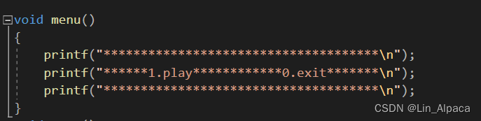 然后在game.h内进行声明,记得引头文件~(自己的头文件用双引号)~可以把stdio.h放在game.h里面就不用引好多次了。