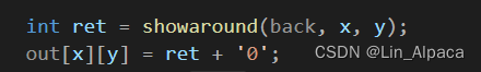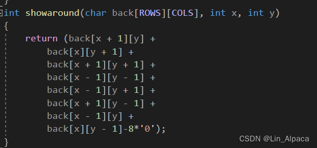 经过三轮选择后的数据,即是可以继续走下去的数据,我们需要找出他周围的炸弹数并将其打印在外界面上。同时,我们数组之中存放的是字符类型的数据。一个数加上字符0的ASCII码值之后就是该数字的字符形式了。