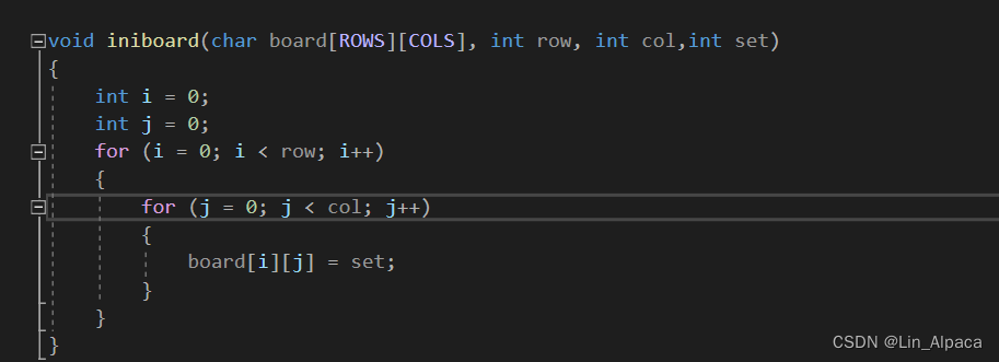 设置一个函数,在game.h声明,在game.c中定义。用row col 和set 来接收我们传过来的行、列、要定义的字符。