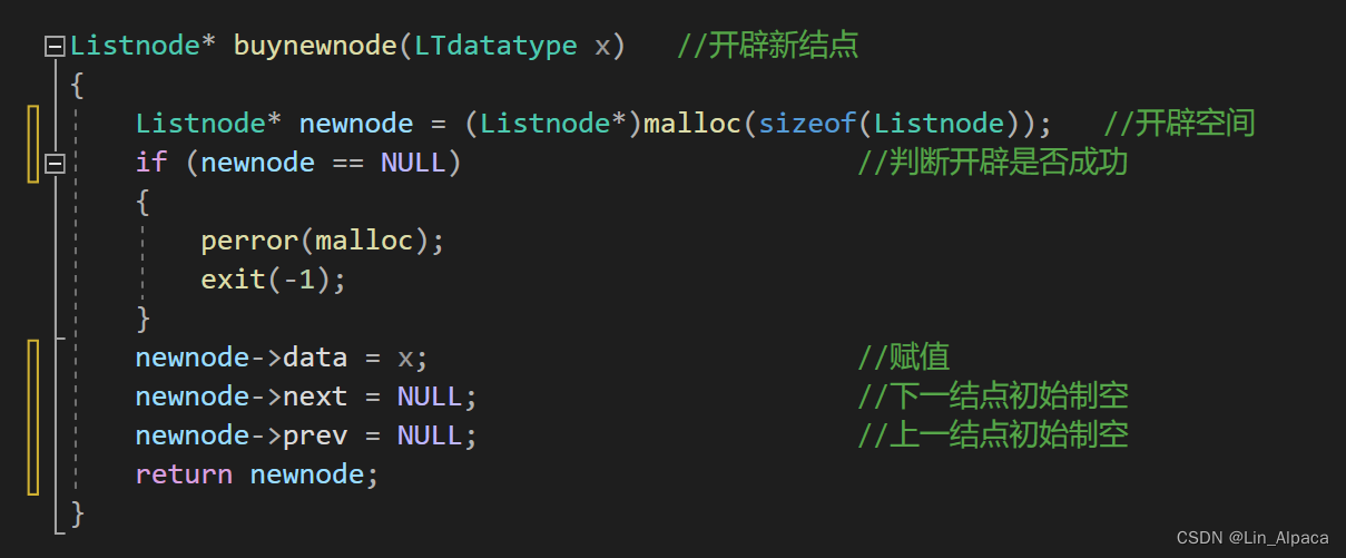 Listnode* buynewnode(LTdatatype x) //开辟新结点