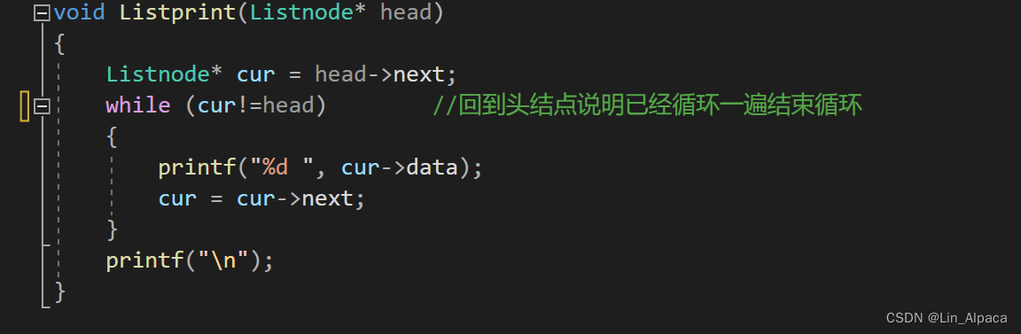 while (cur!=head) //回到头结点说明已经循环一遍结束循环