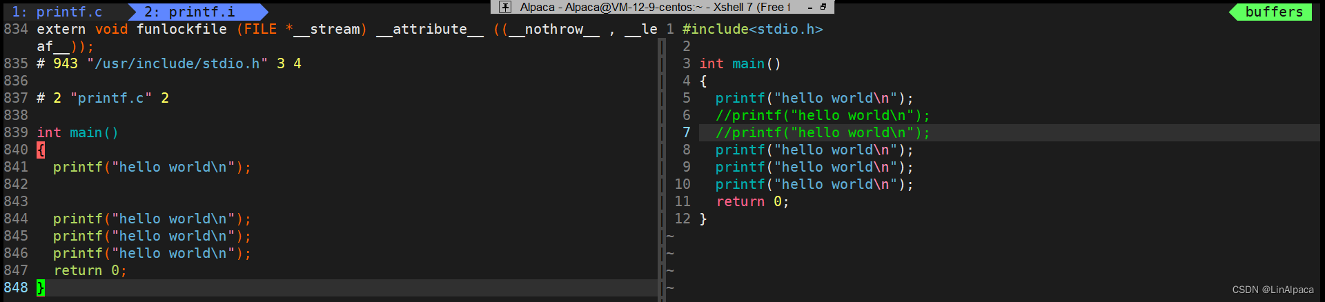 🧋可以看到,注释的部分被删去,并且多出来八百多行的代码,就是源程序文件将头文件展开后的结果。
