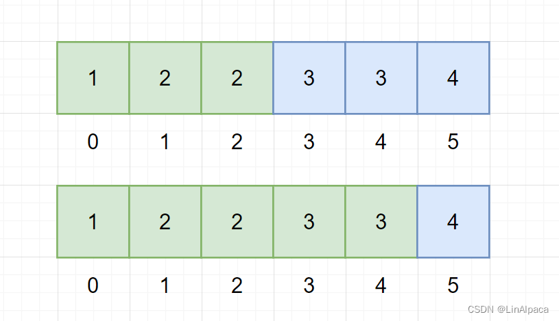 🥥而首尾两个点就能够用二分查找找到。分别是将数组由小于目标值和大于等于目标值、小于等于目标值和大于目标值两种分法进行划分,即进行两次二分查找,而这两次二分查找的两个分界点恰好就是一个区间的两个端点。