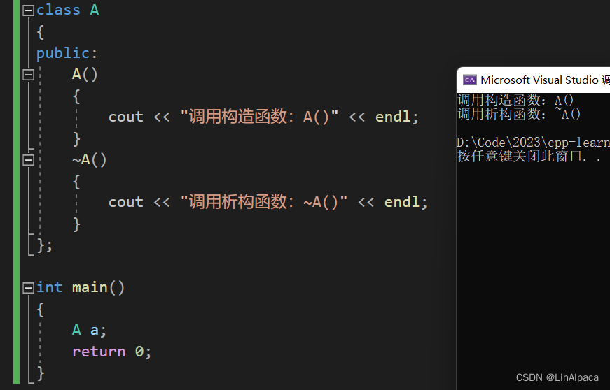 cout << "调用析构函数:~A()" << endl; //调用析构函数的话就输出
