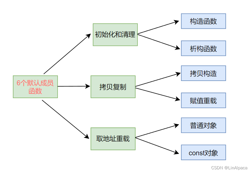 不仅如此, 类中还带有六个天选之子,也就是我们说的默认成员函数。只要用户没有显示实现,编译器就会自动生成,下面就开始一个个学习吧。