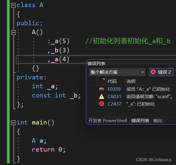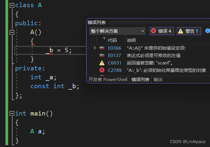 🧋虽然说我们已经学会了使用构造函数对函数进行初始化,但下面这个情况是否出乎你的意料呢?const 的成员变量,因其特性一开始我们便需要对其初始化,但想在函数之中修改却又无法修改,这是为什么呢?