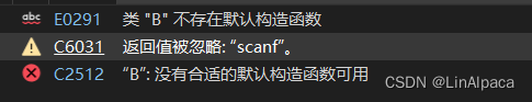 🧋没有默认的构造函数即指类中至少有一个非全缺省的构造函数,这才满足类中没有默认构造函数的情况。我们知道对于自定义类型,编译器会自动调用目标类的默认构造函数,因此当前情况便会出现没有函数能够调用的情况。