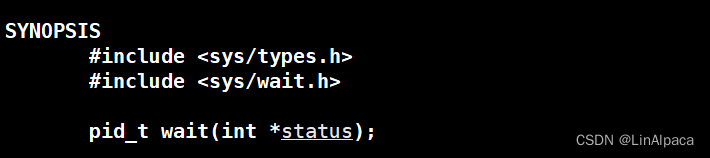 🧊通过 man 手册查询,我们可以看到 wait 函数的详细信息,该函数会随机等待一个子进程,等待成功返回子进程的 pid 否则返回-1。