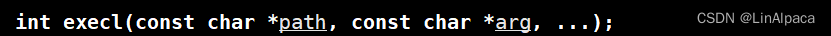 🧊第一个就是在上面示例代码中使用的 execl,其中它的参数分别是可执行程序的路径以及运行该程序时所带的参数。