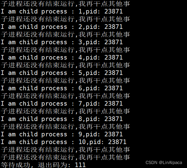 printf("子进程还没有结束运行,我再干点其他事\n");