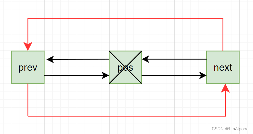 🍉erase 用于删除指定位置的节点,我们通过获取当前节点前后节点,更改二者指向后再删除当前节点。