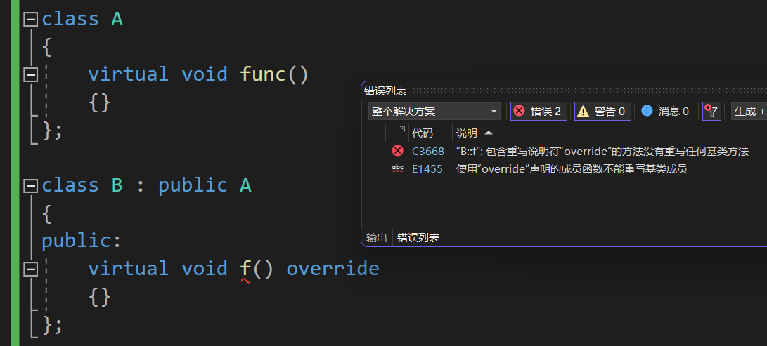 🧊用于检查子类虚函数是否重写了父类某个虚函数,若未重写则编译报错。