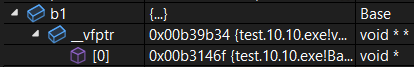 🧊实例化一个对象后,打开监视窗口,我们看到其中有一个指针,这便是传说中的虚函数表指针。