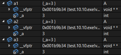printf("对象虚表的地址 %p\n", *(VF_PTR**)&a);