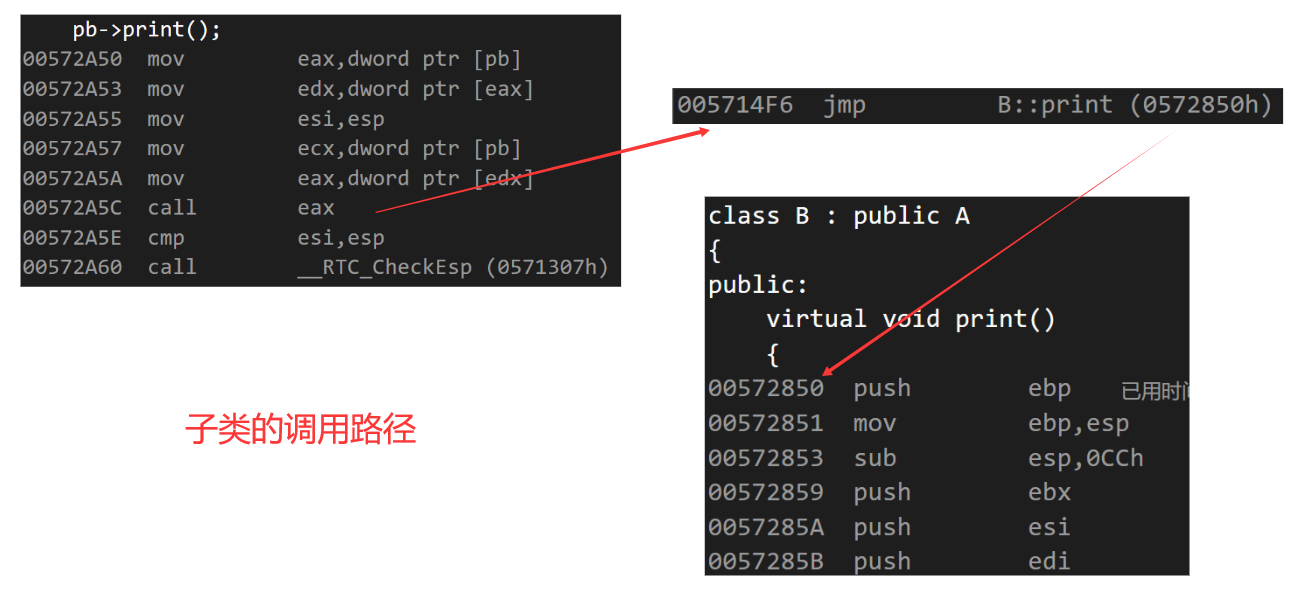 🧊这时候,细心的我们又注意到了,明明调用的是同一个函数,而虚表中的地址却不同。