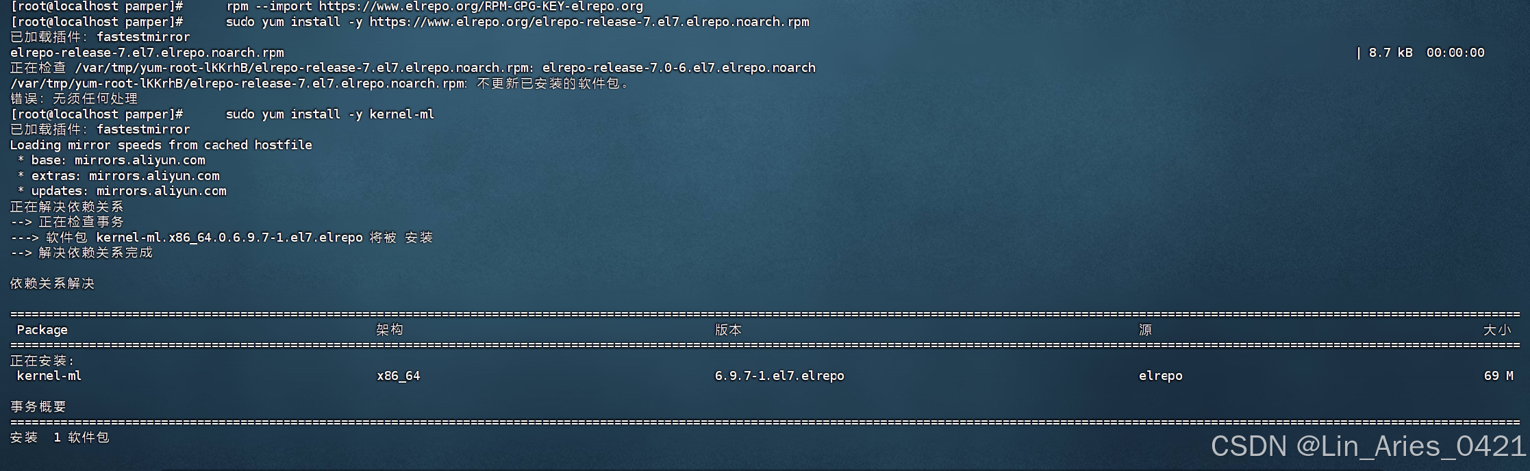 yum install -y kernel-ml-6.9.7-1.el7.elrepo.x86_64
