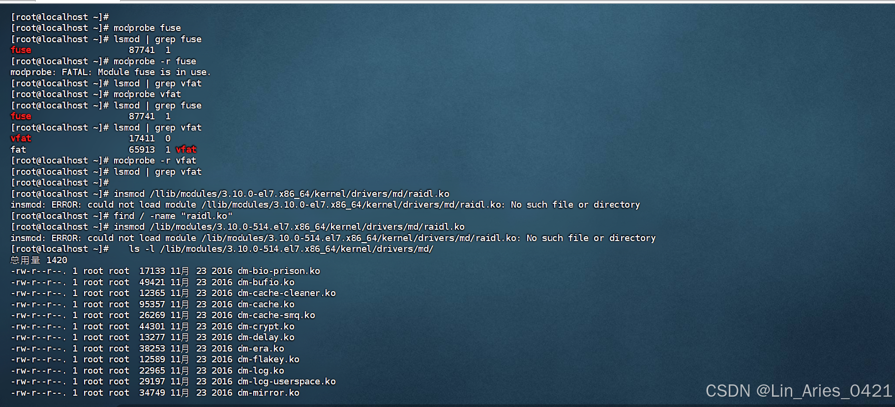 rmmod命令在卸载模块时,如果模块正在被使用(lsmod命令中Used by列的值不为 0),卸载操作会失败。 - modprobe - r 命令:和