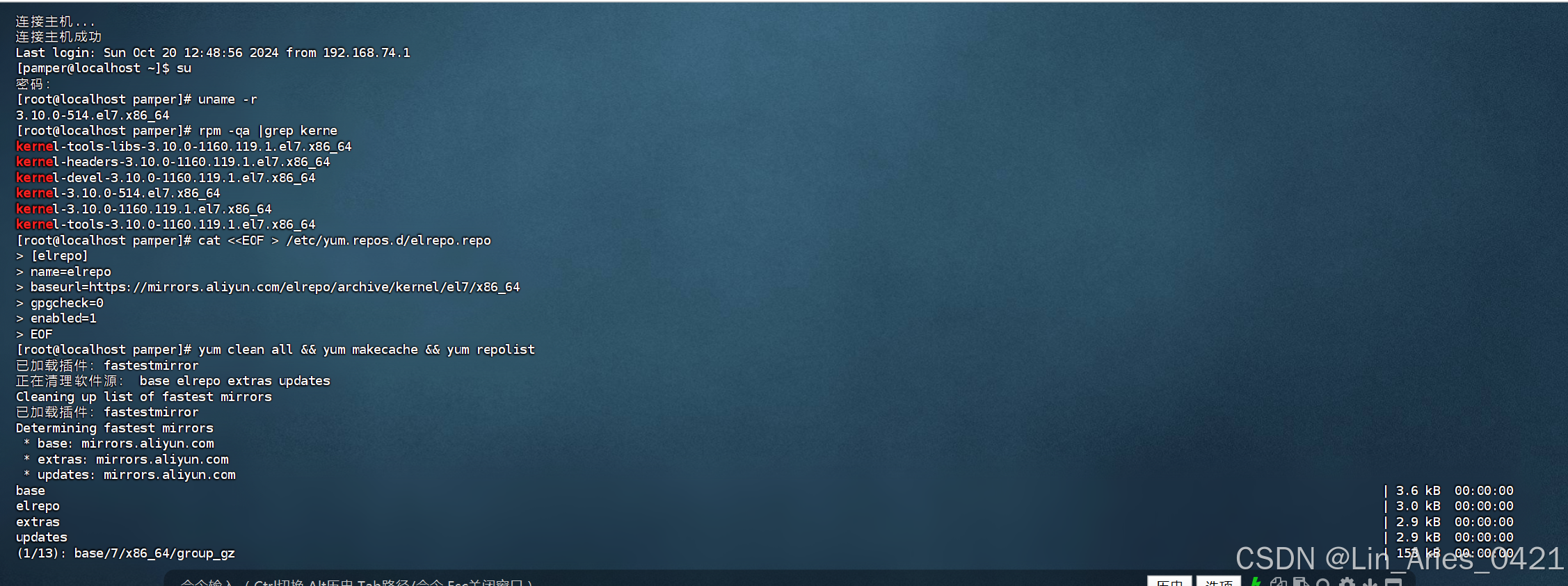 我这里内核是3.10,因为安装wireguard无法使用,原因是内核版本太低, 网上浏览了几篇帖子之后了解到内核>=5.6版本是自带wireguard,所以这里我选择升级内核