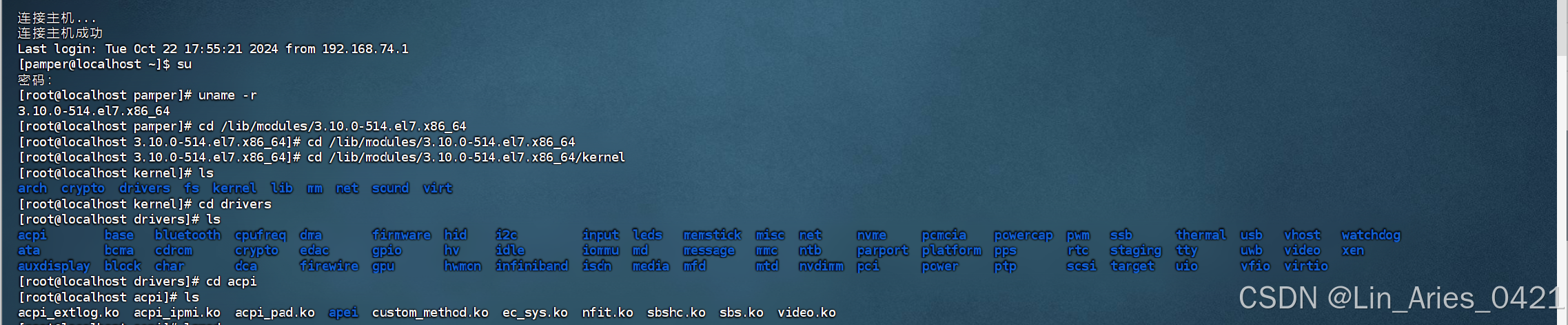 由输出结果可知,在该目录下存放着多个模块,其中,ko是模块的扩展名。
