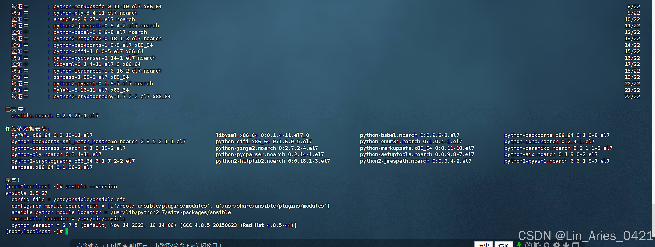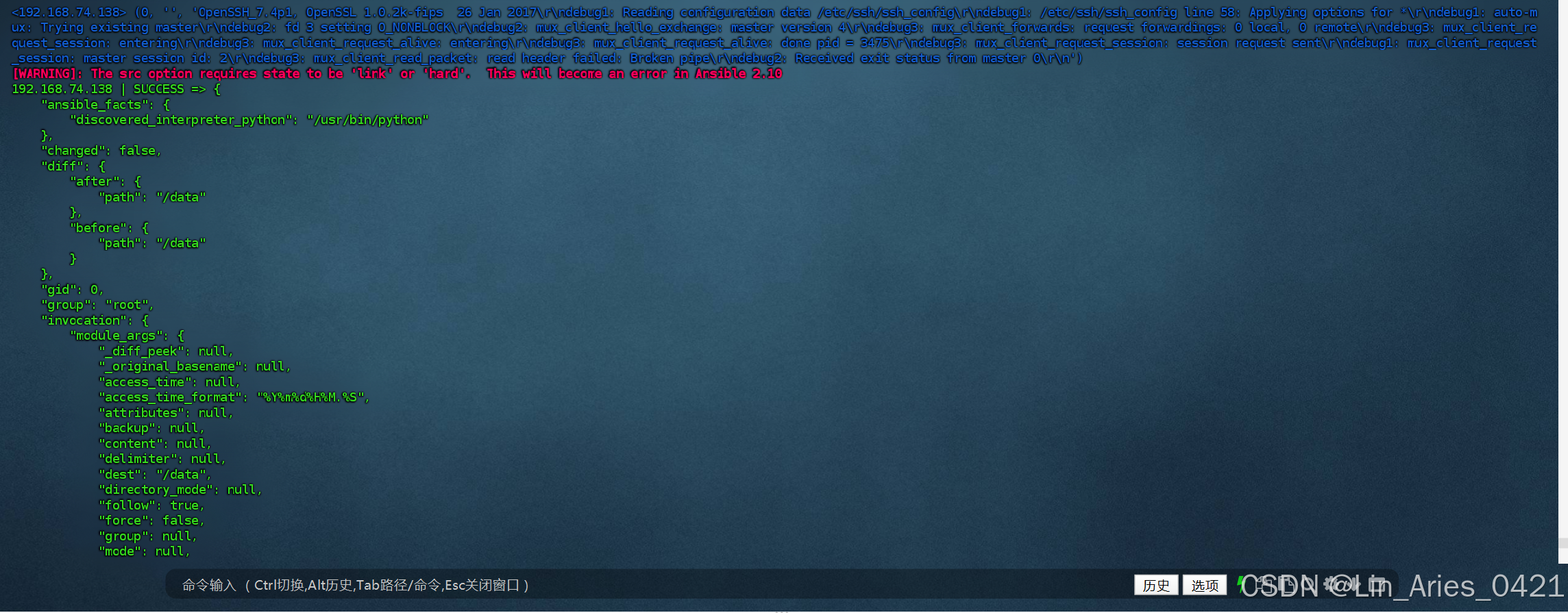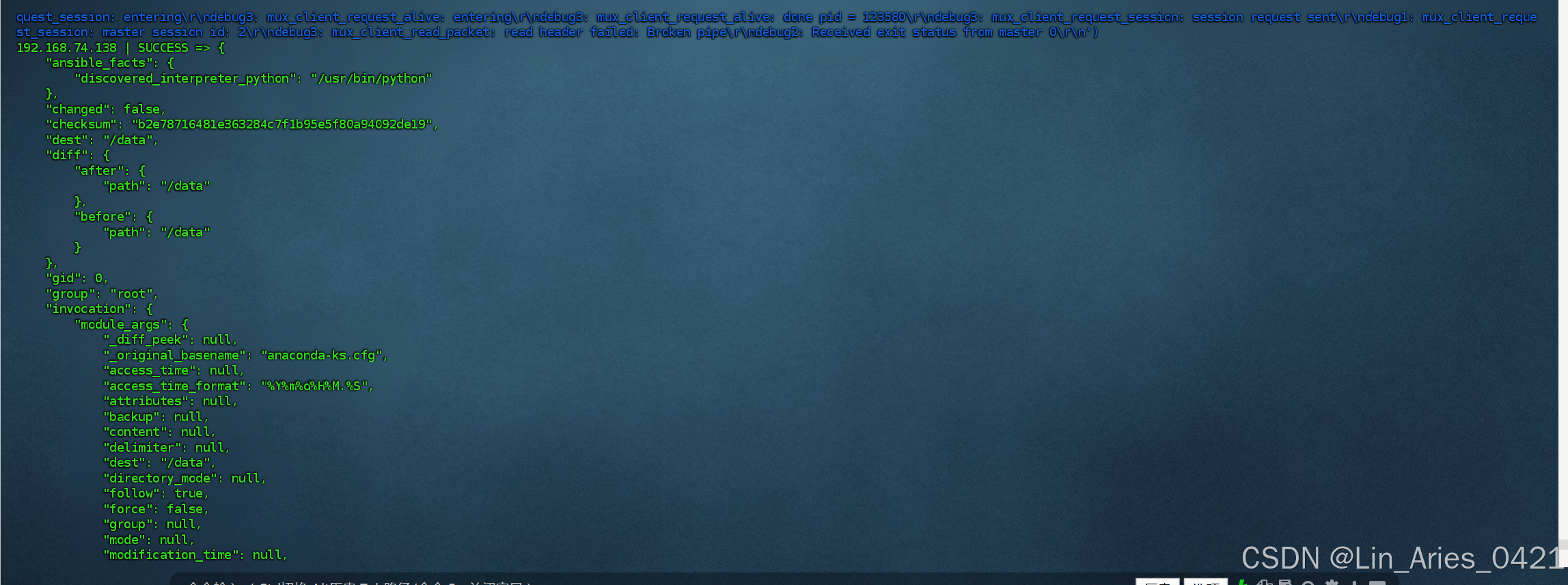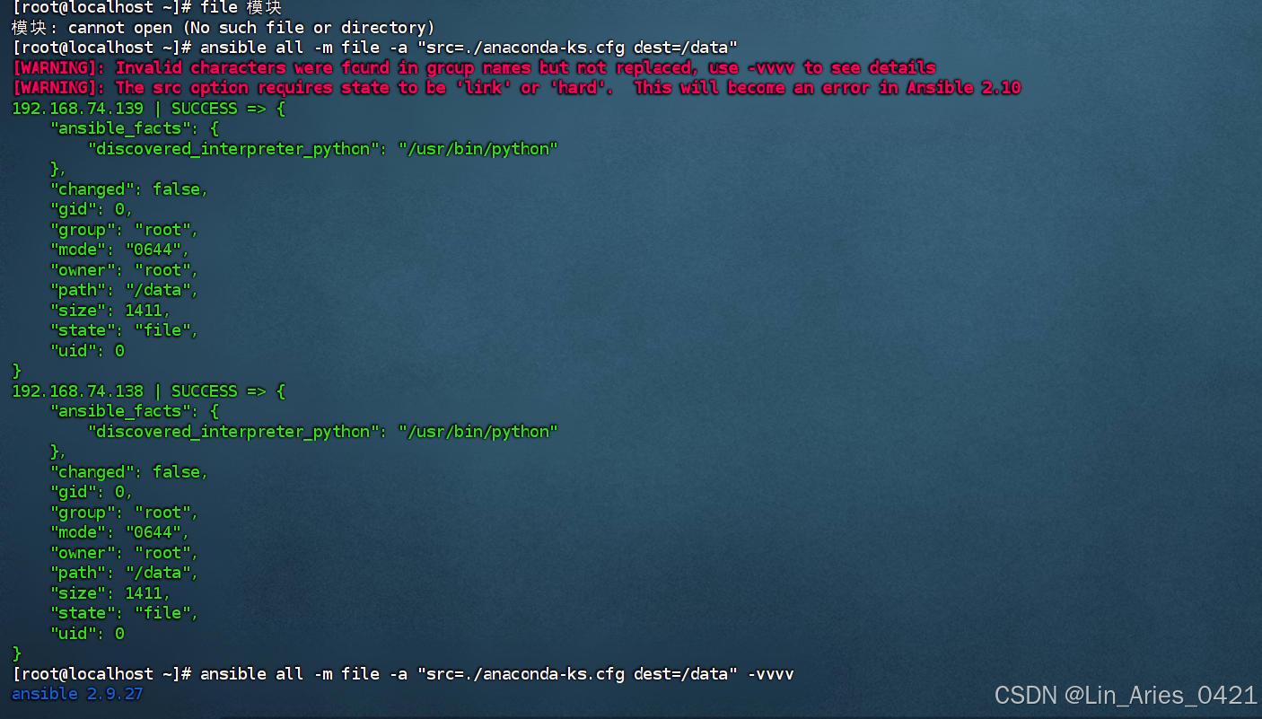 # 2、解压ansible管理机上的压缩文件到远程主机: