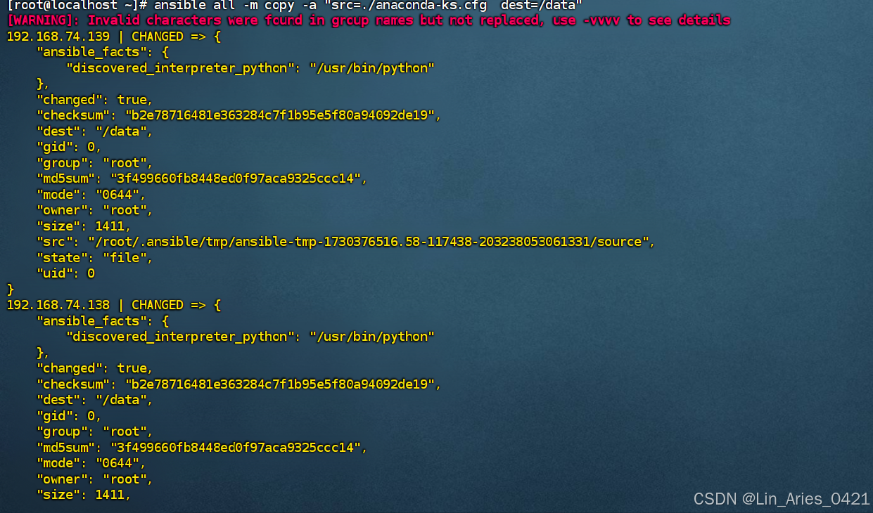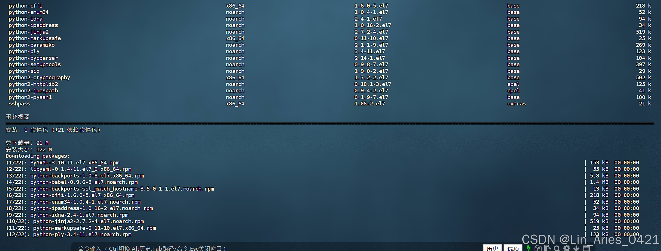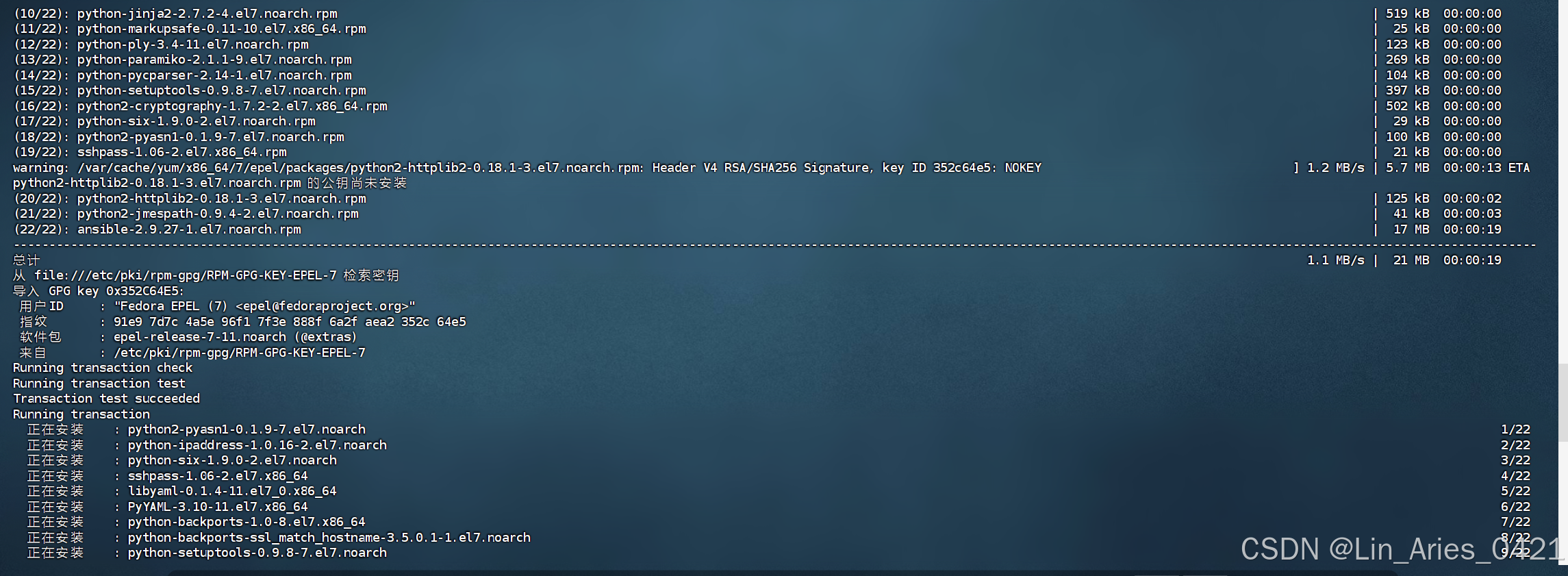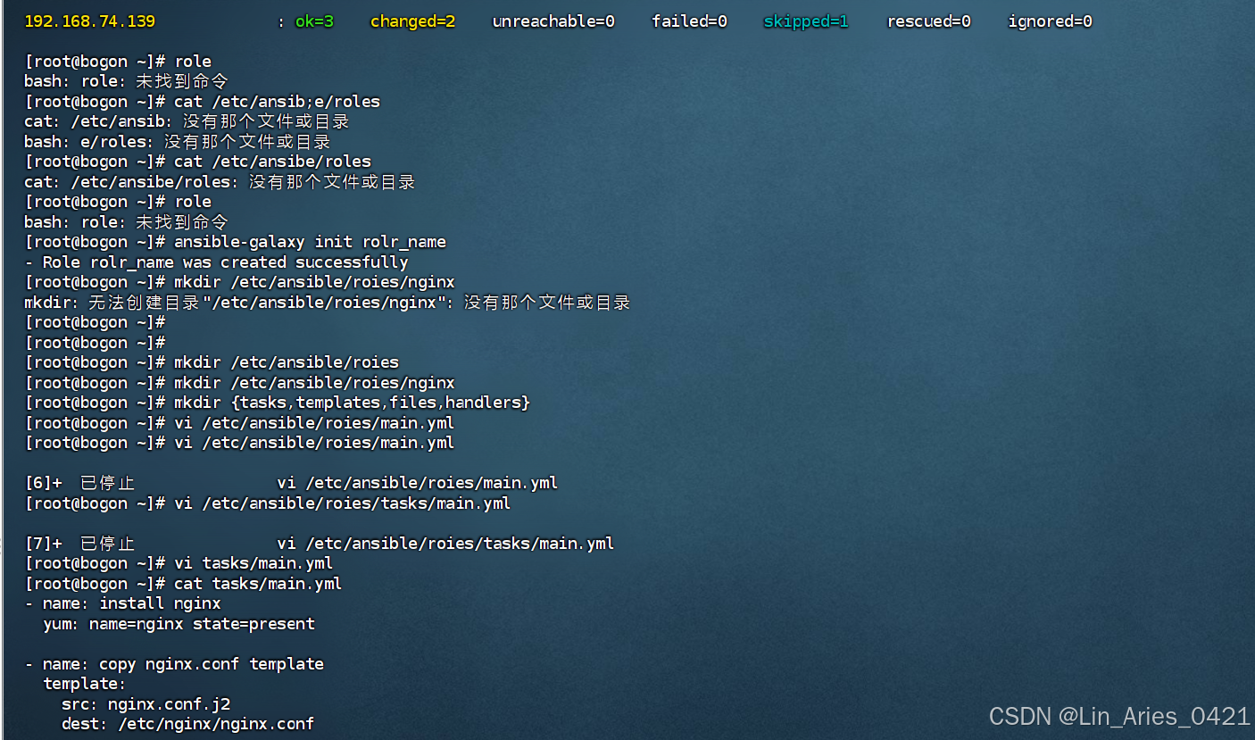 # 2、解压ansible管理机上的压缩文件到远程主机: