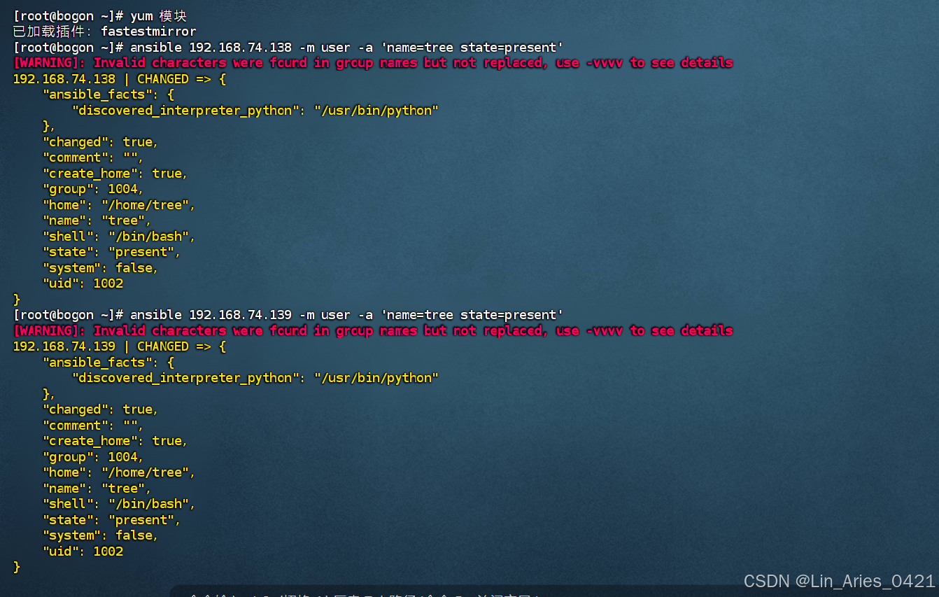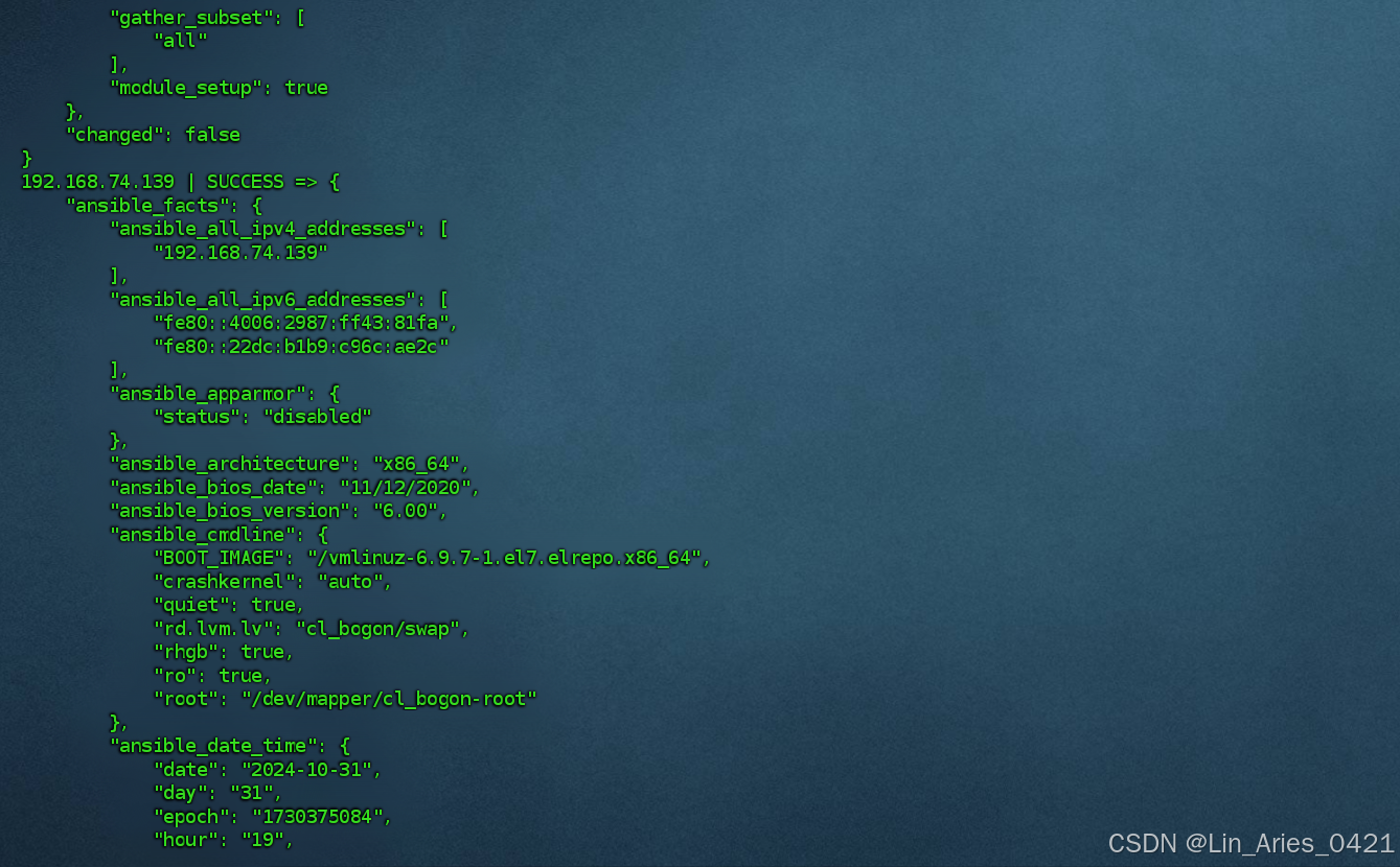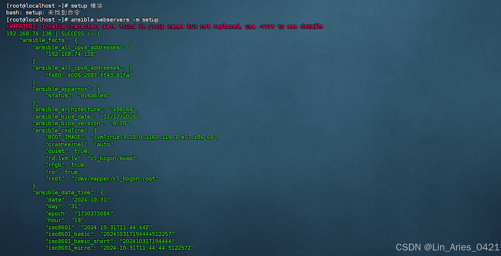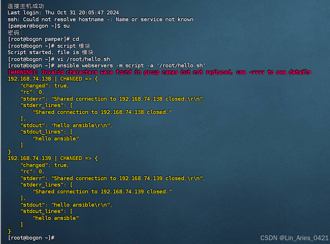 # 2、解压ansible管理机上的压缩文件到远程主机: