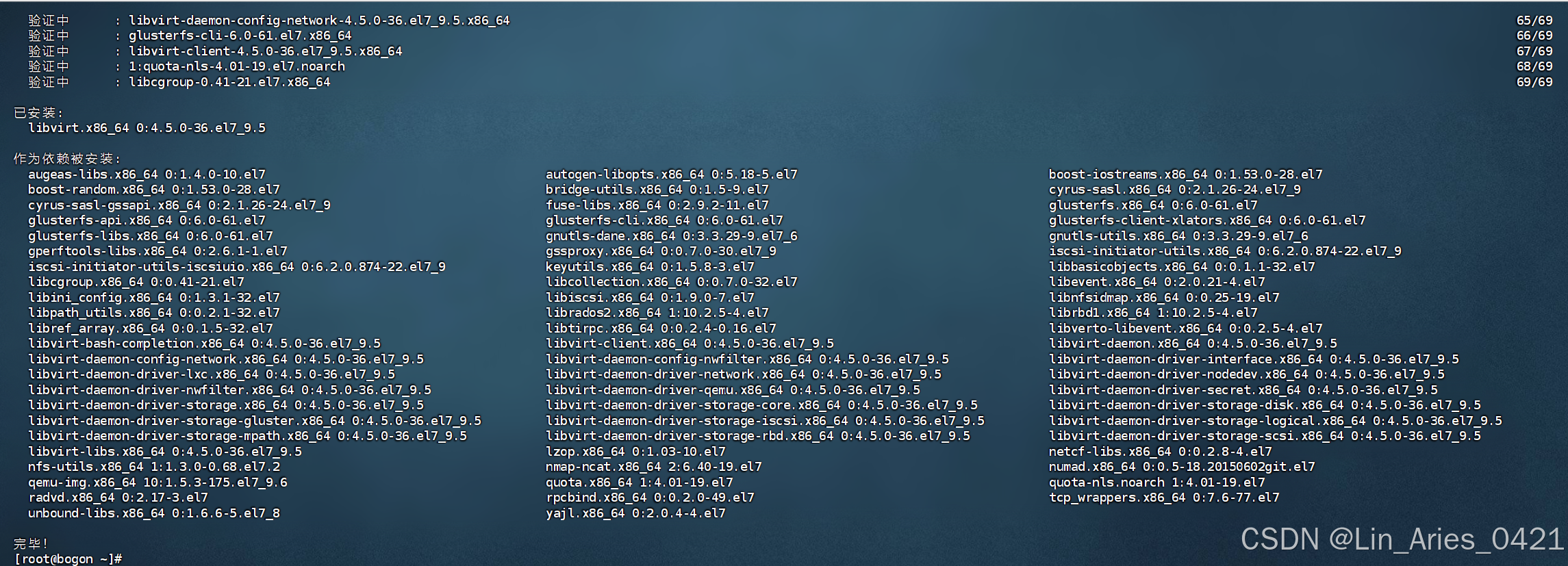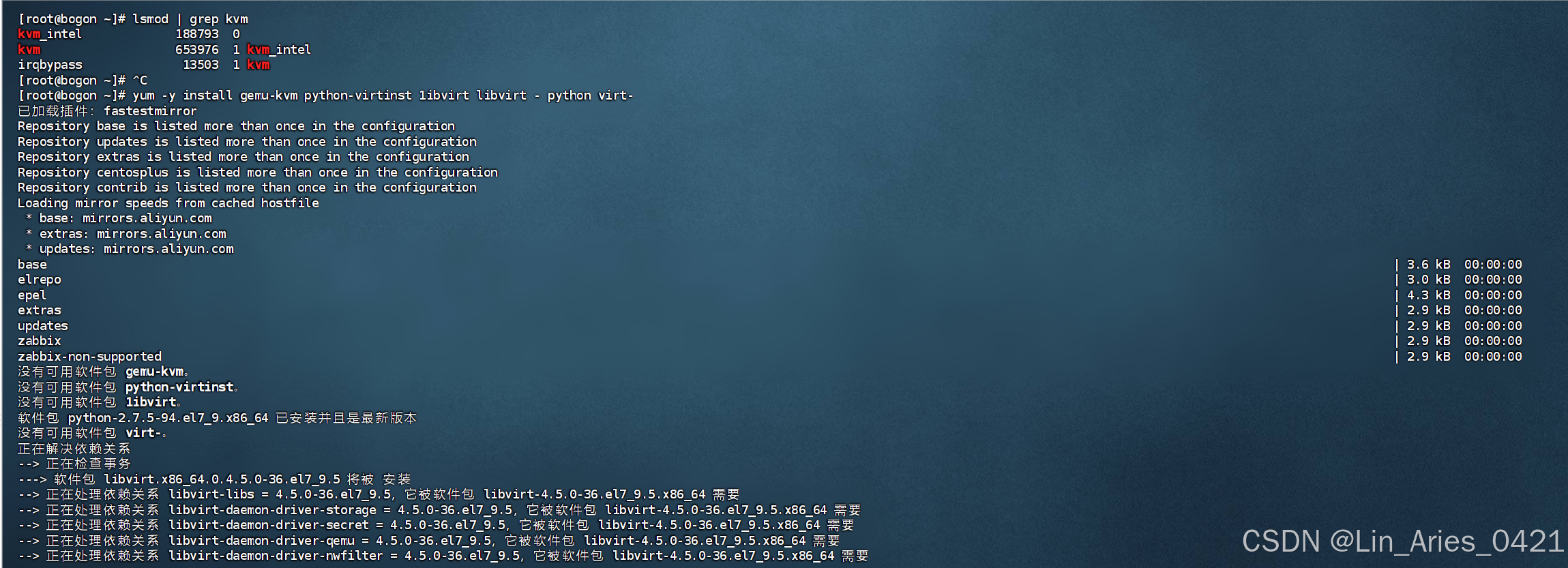 [root@bodon ~]yum -y install gemu-kvm python-virtinst 1ibvirt libvirt - python virt-