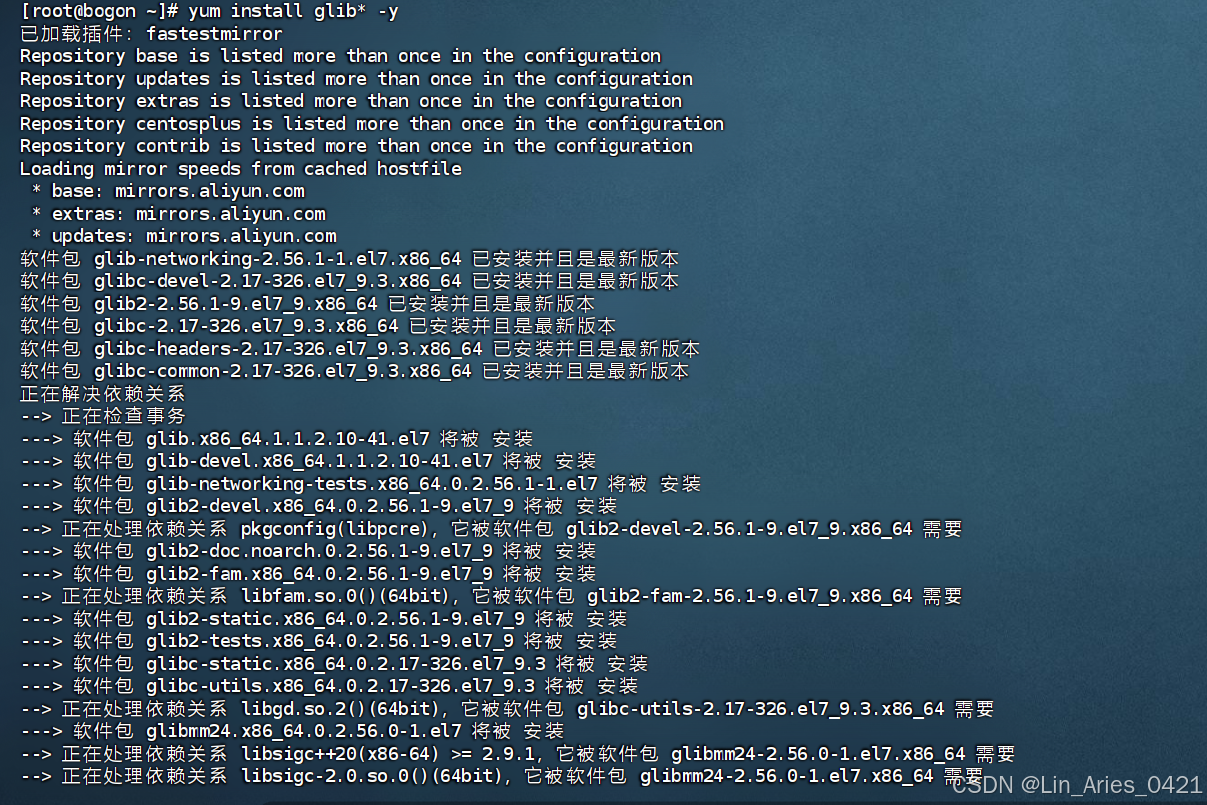 [root@localhost ~]# yum install glib* -y