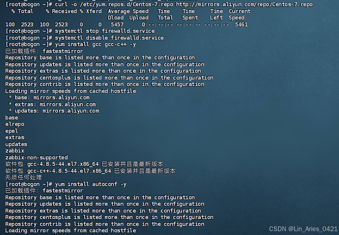 [root@localhost ~]# curl -o /etc/yum.repos.d/Centos-7.repo http://mirrors.aliyun.com/repo/Centos-7.repo