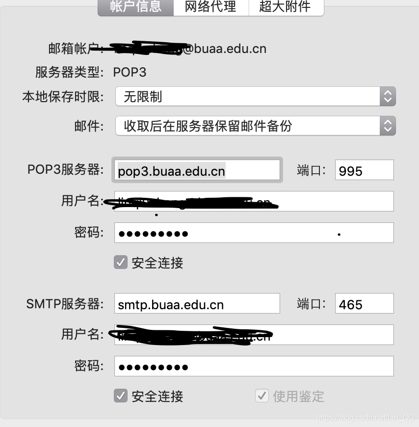 原本在手机上直接登陆账号密码就能收发北航的邮件或者qq的邮件,可是换到mac上的foxmail客户端却一直提出error