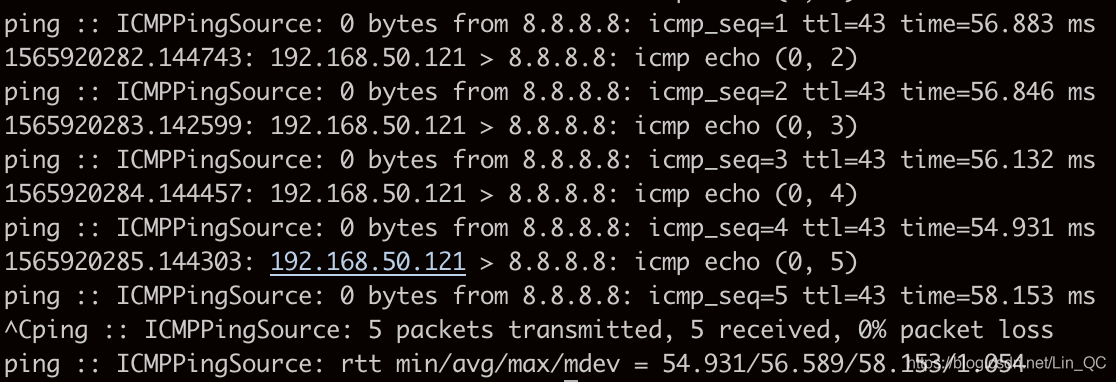 -> ping :: ICMPPingSource($DEV, $DADDR, INTERVAL $INTERVAL,