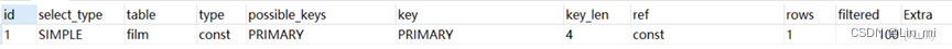 举例来说,film_actor的联合索引 idx_film_actor_id 由 film_id 和 actor_id 两个int列组成,并且每个int是4字节。通过结果中的key_len=4可推断出查询使用了第一个列:film_id列来执行索引查找。