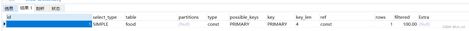 (结果集不一定是能做参考)这一列展示的是额外的信息。常见的重要信息如下: