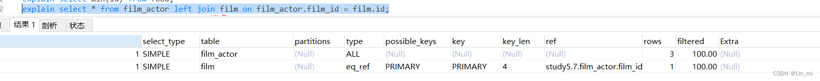 explain select * from film_actor left join film on film_actor.film_id = film.id;