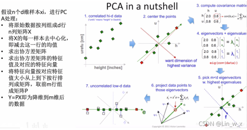 降维:降低高维数据,简化计算,达到数据降维,压缩,降噪(去掉不太重要的特征)的目的