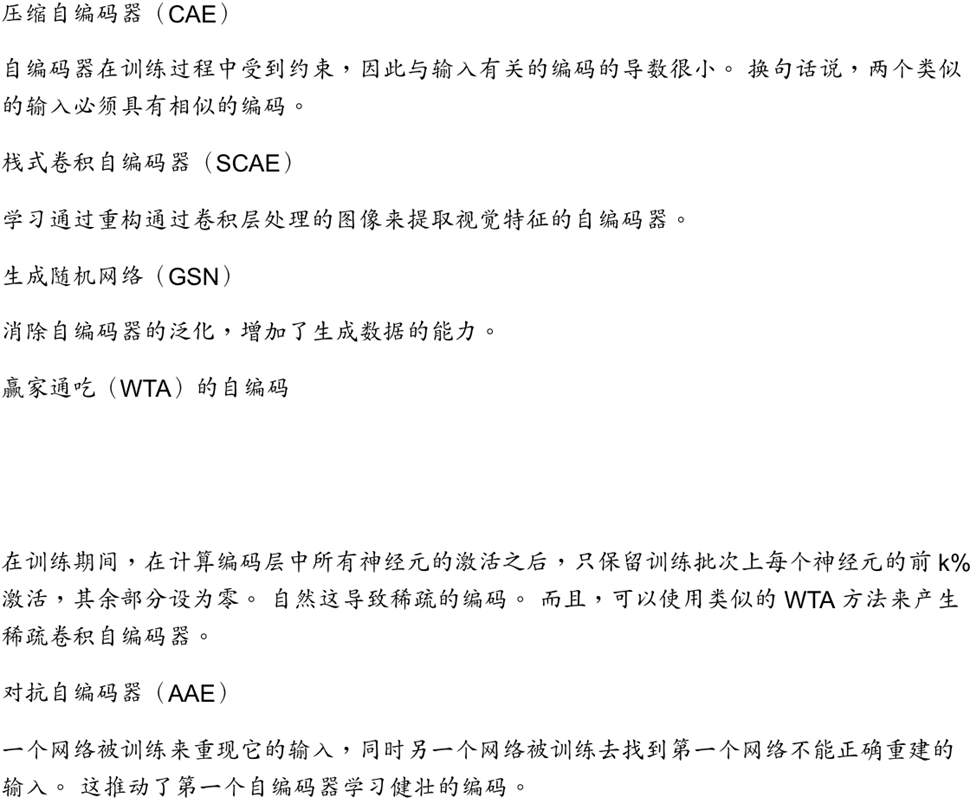 在大体上,损失模型和训练方法与普通神经网络类似。但是下面讲一些具体的自编码机,他们都具有这种基础结构,但是在细节上又有所不同。