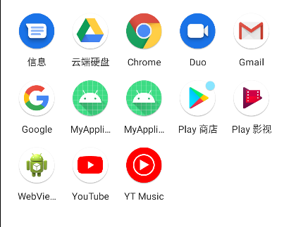 在application节点下面还有一个activity结点,这个结点代表一个活动页面,其中的一个属性exported代表着是否允许其他页面调用该页面。在它下面有一个节点Intent-filter,它的是过滤信息。在Intent-filter下面有两个节点,action节点设置的android:name="android.intent.action.MAIN"表示该页面是APP的入口页面,是APP最先打开的页面。category节点设置的android:name="android.intent.category.LAUNCHER"决定着在桌面上是否显示的APP图标,如果有两个activity同时设置的这两个属性,那么在桌面上会显示两个APP图标。如下图所示,有两个相同的图标。