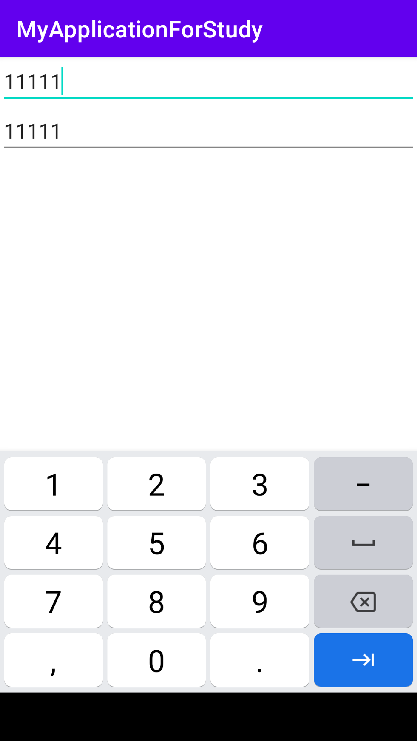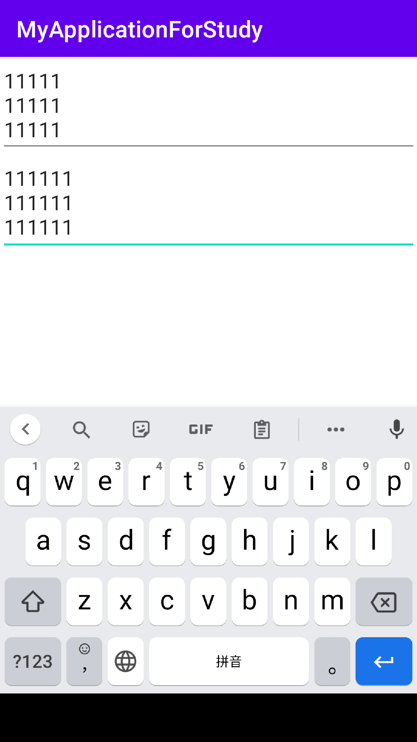 效果图如下。两个编辑框的文本一致。除了这种用法,也可以当第一个编辑框文本长度达到11时变更焦点到第二个编辑框或者关闭输入法等。