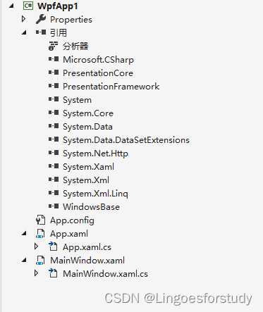 打开VS,新建一个WPF项目,文件结构如下图: