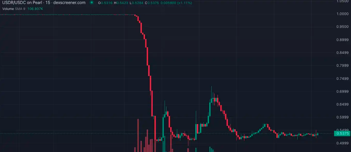 10月11日,一种名为Real USD(USDR)的稳定币脱锚,在几个小时内迅速从1美元跌至0.5美元,而这无疑是一场典型的挤兑,主要由该稳定币的高流动性债务与其低流动性抵押物之间存在期限错配所致。