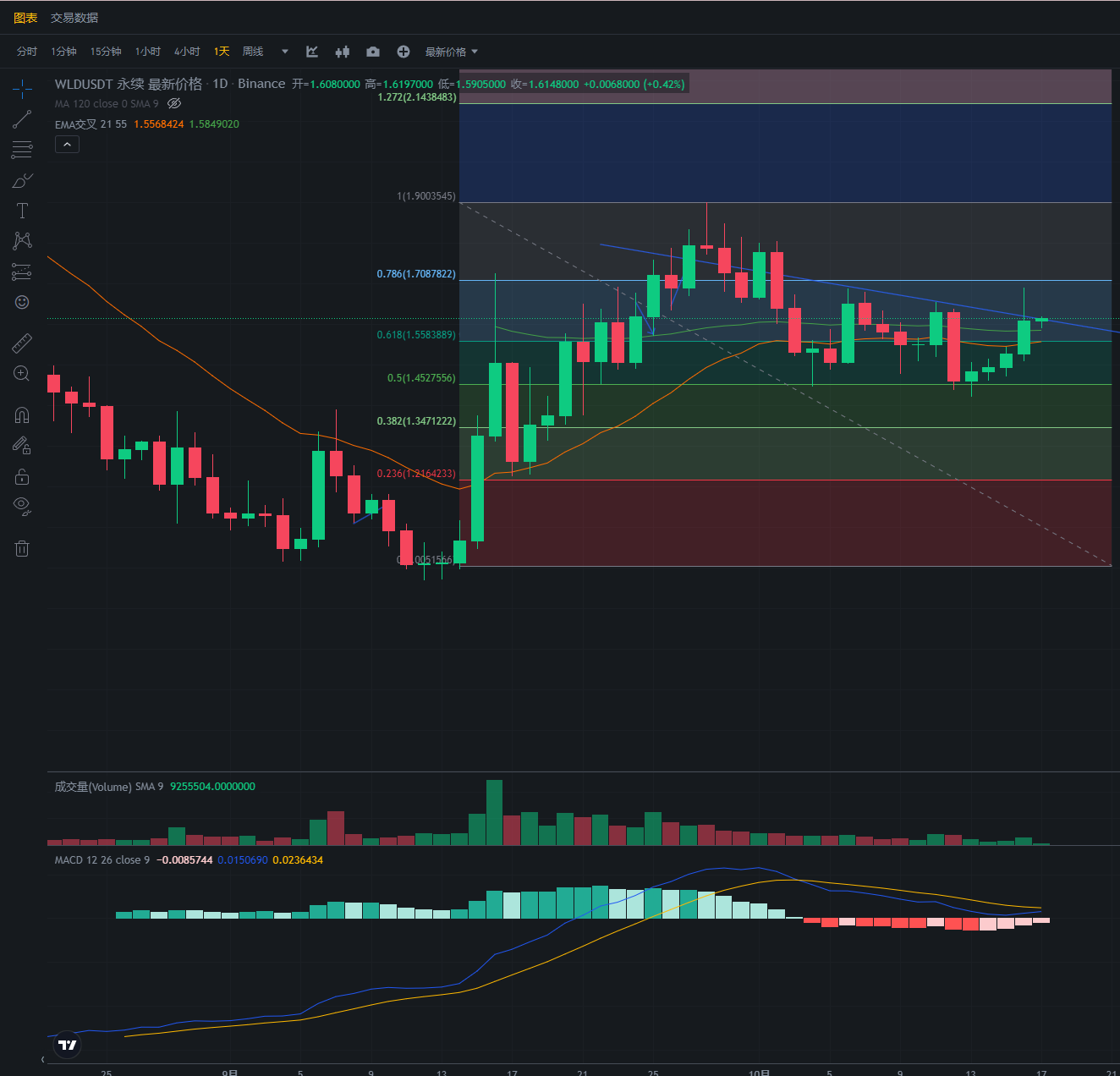 Wld目前来看反弹回去了,目前来看稍稍有点强势,走出了五连阳线,不仅回补了阴线,同时还完全涨回了,注意观望后续行情。