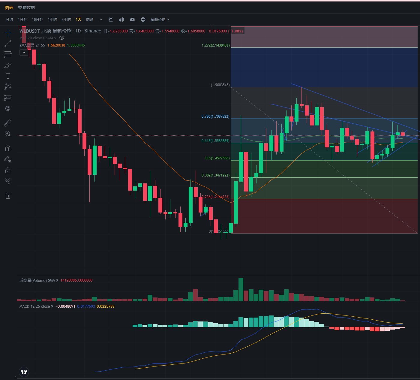 Wld目前来看,连续五天的上涨开始了震荡盘整阶段,如果不能够继续向下,那么盘整结束可能回再次上涨。笔者目前依然认为是看到1.25附近。