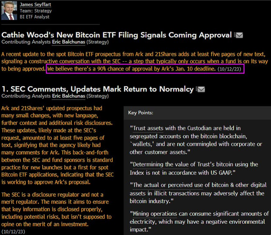 彭博分析师James Seyffart提醒大家不要太过乐观:SEC可能会要求重新提交完整的19b-4表格,或者SEC可能会在45天、60天、90天内发布新命令,没有人知道接下来的步骤!对于投资者来说,关注SEC的决策和市场的反应将是至关重要的,只有在充分了解市场动态的基础上才可以做出明智的投资决策。