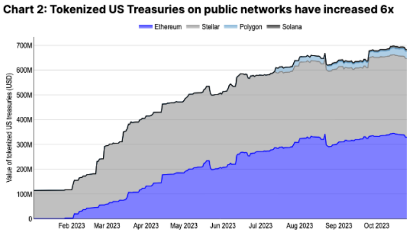 由此可见,当前的经济环境为代币化赋予了一种不同的意义,代币化的用例已经从将不动产等不动产放在链上转向了资本市场工具,如美国国债、银行存款、货币市场基金和回购协议(回购)。尽管完全实施可能需要数年的时间,而这将可能是传统金融机构未来发展道路,也是新一轮加密周期的重要组成部分。