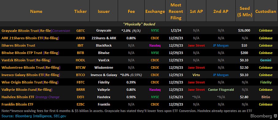 此外,灰度和Hashdex希望将其现有产品转化为现货比特币ETF,它们在本月早些时候提交了更新的文件。然而,彭博ETF分析师James Seyffart指出,尽管灰度已经提交了三份更新文件,但最新文件中并没有提供太多细节,只在现金创建方面进行了明确描述,仍然没有指定授权参与人。此外,文件中也没有提到费用的任何描述,这也是一个重要问题。