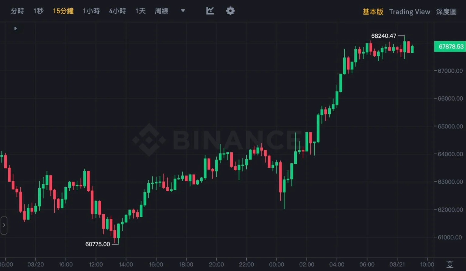 比特币反转走高,触及68240美元的日内高点,当天早些时候BTC曾跌至60775美元。以太坊也收复了当天早些时候8%的跌幅,回升至3560美元。前十大币种近24小时普涨,Solana、DOGE、LTC和BCH在主流山寨币中领涨。