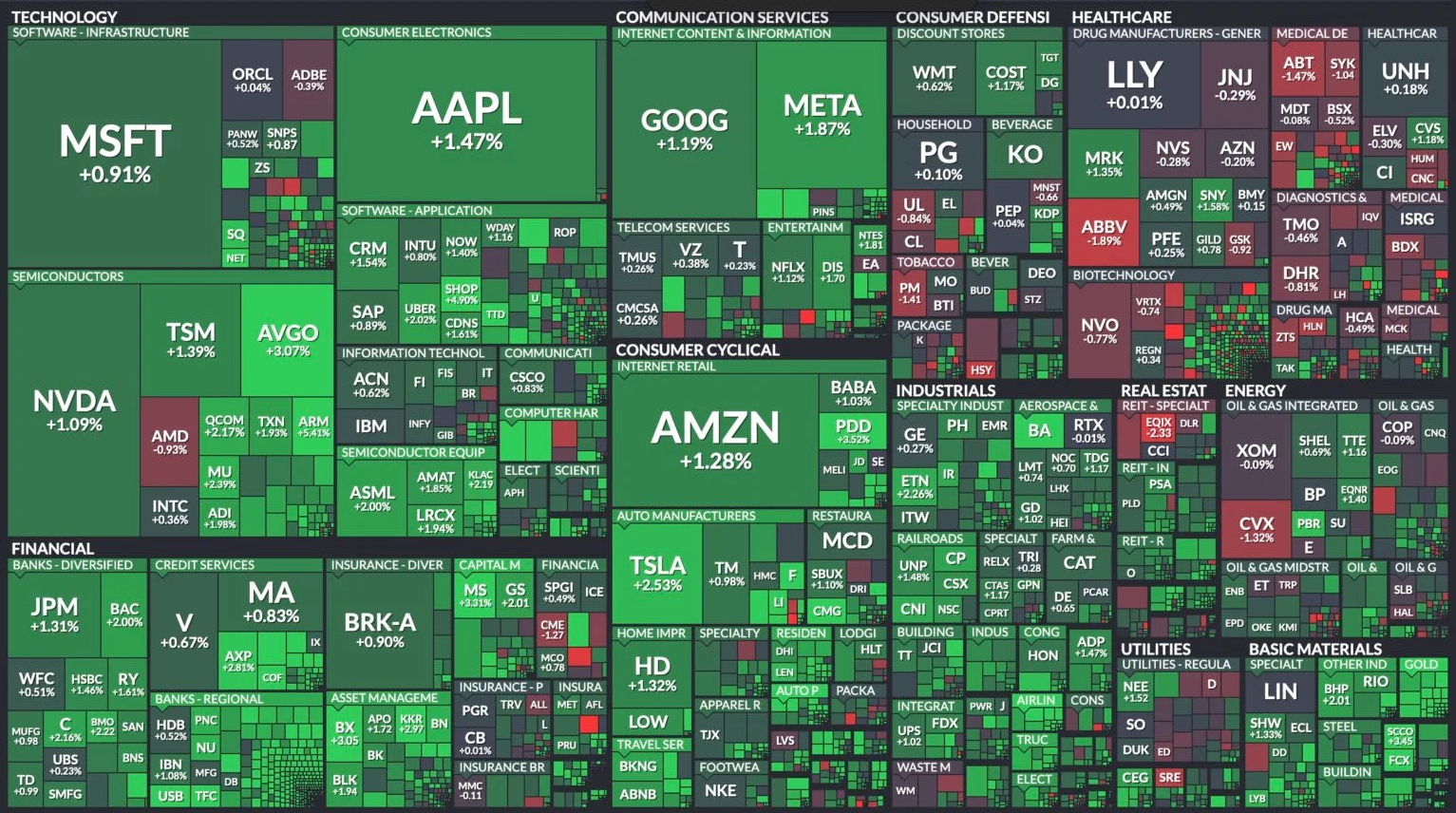 黄金投资者松了一口气,市场出现了一些新的买盘势头。美股三大股指集体收高,道指初步收涨1.03%,标普500指数涨0.89%,纳指涨1.25%,均创收盘新高,衡量美元兑其他主要货币强势的美元指数(DXY)较盘中高点下跌近0.7%,表明投资者的风险偏好有所增强。