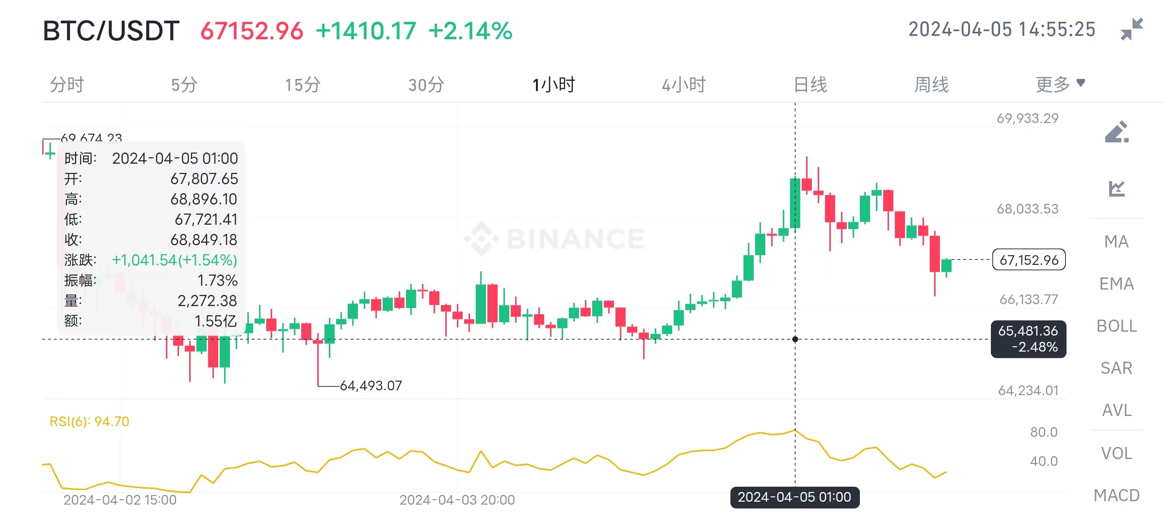 在美联储官员表示今年可能不会立即降息后,虽然美国主要股指昨日大幅下跌,但加密市场进入复苏模式,主流币种波动性增加。比特币在美股开盘时跌至65064美元,但此后逆转走势并反弹至69309美元高点,日内涨幅为6.5%。山寨币重回上升趋势,前200种代币中的绝大多数都录得上涨。